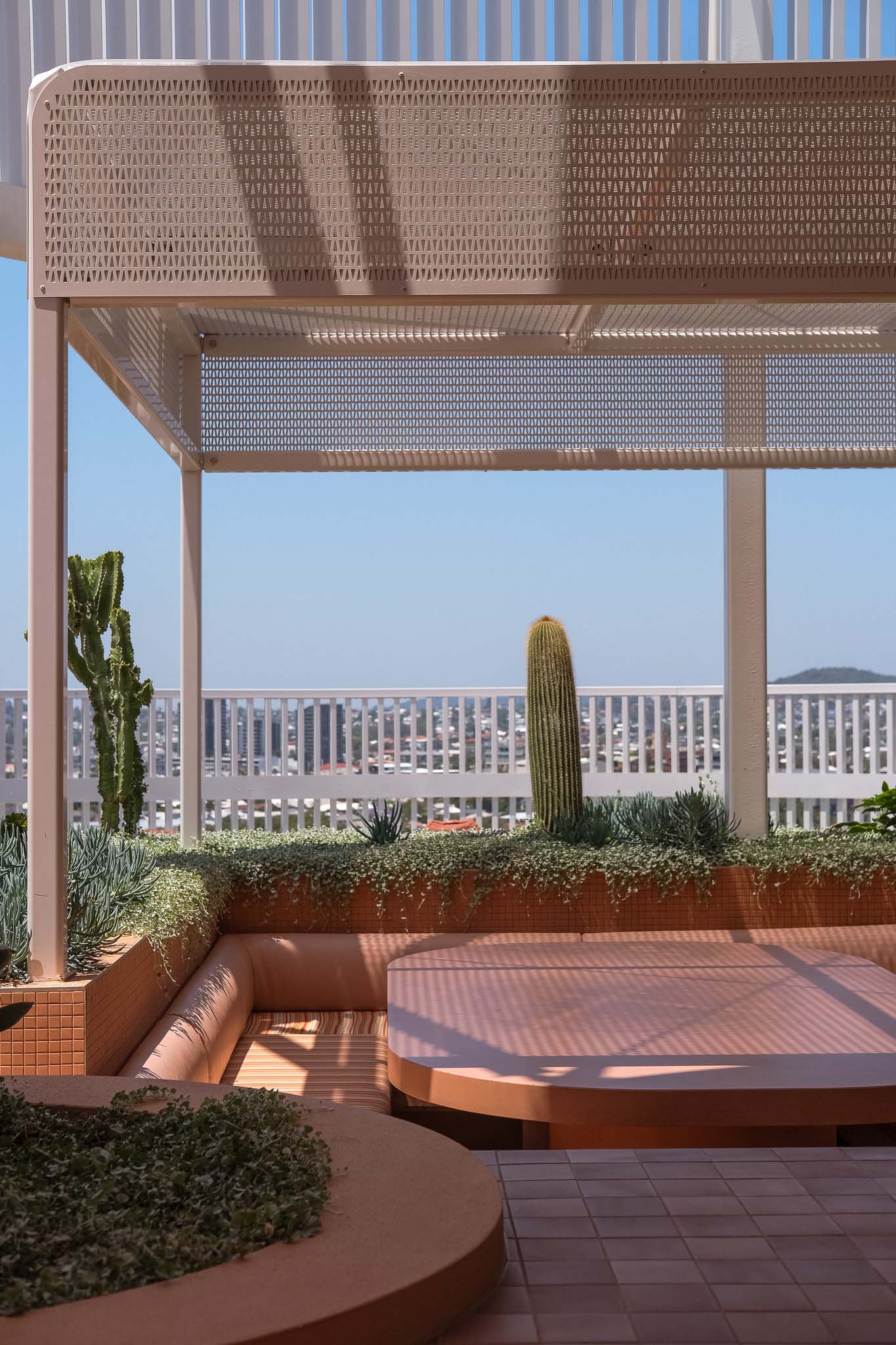 Over looking the Brisbane city skyline, the Hillyard House rooftop is a seamless blend of wellness, connection, and character-rich design. Amidst the luxurious amenities and sun-drenched garden beds of cacti, Blend Concrete Designโs one-of-a-kind concrete pieces anchor the spaceโadding to its retro aesthetic while showcasing their enduring presence.