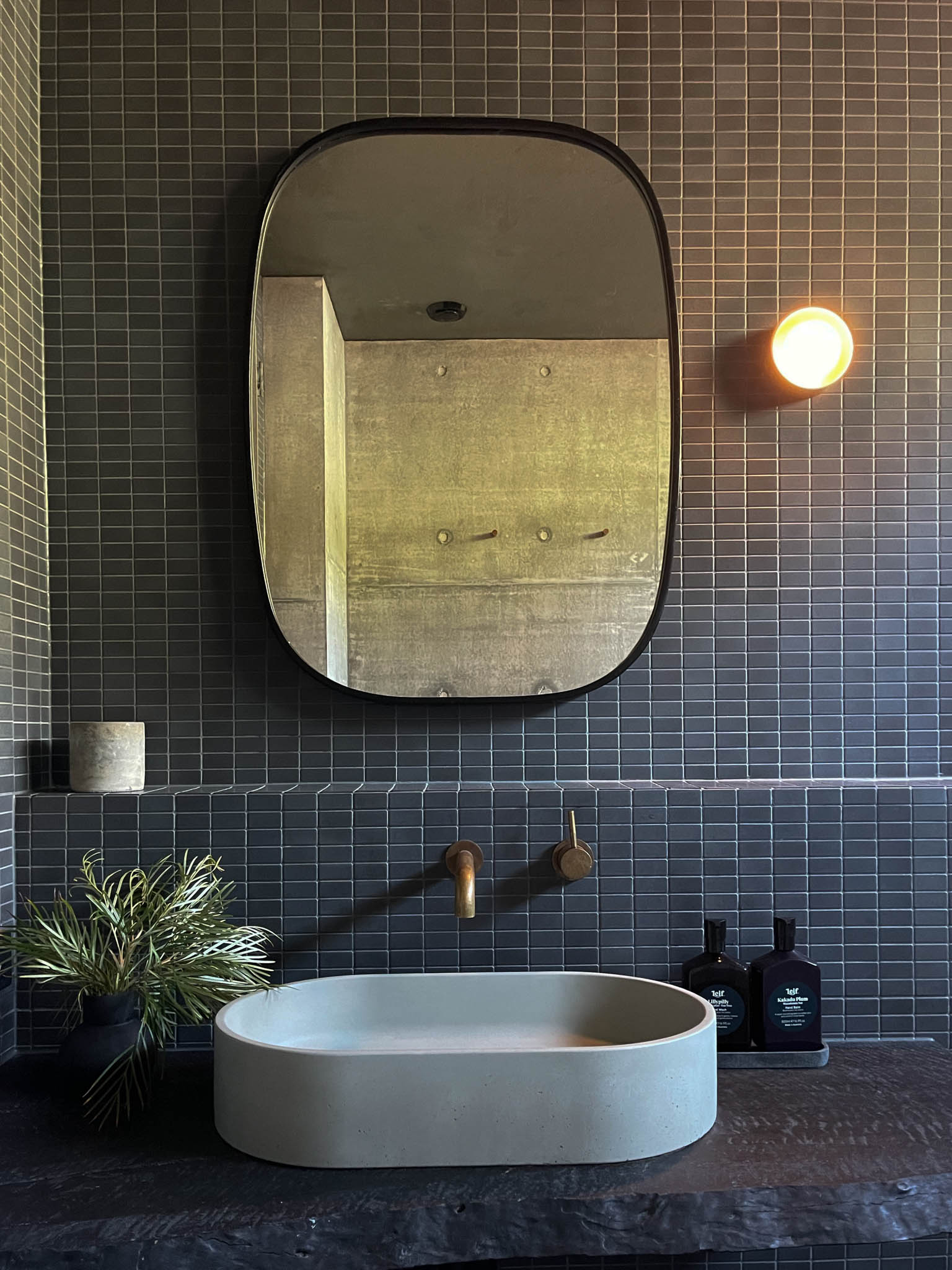 The minimalist, curved form of the concrete mirror and basin make them the perfect combination for any bathroom.